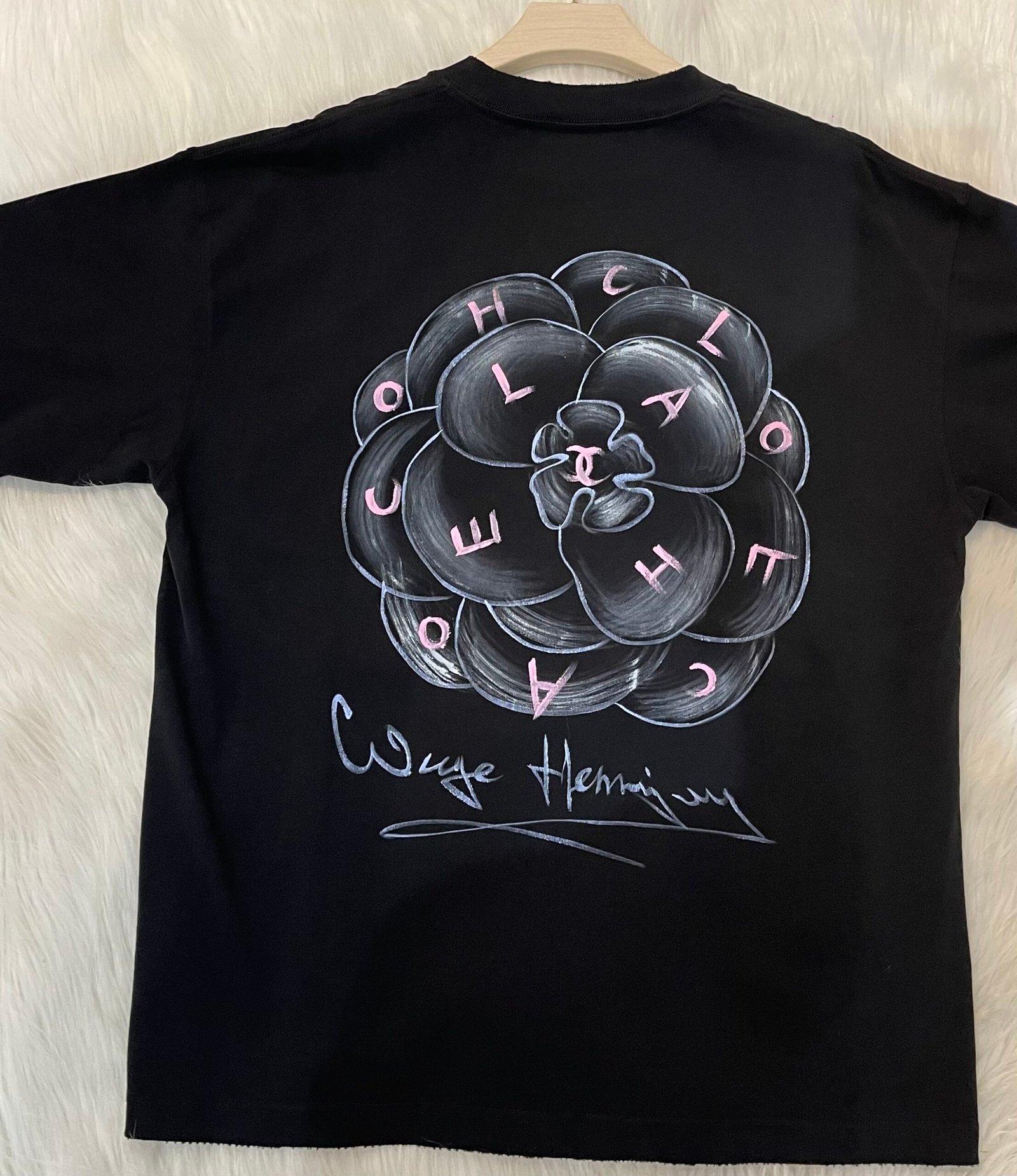 CHANEL CAMELIA FLOWER PRINT CREW NECK COTTON T-SHIRT